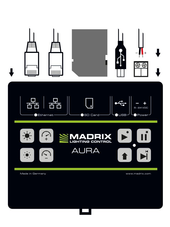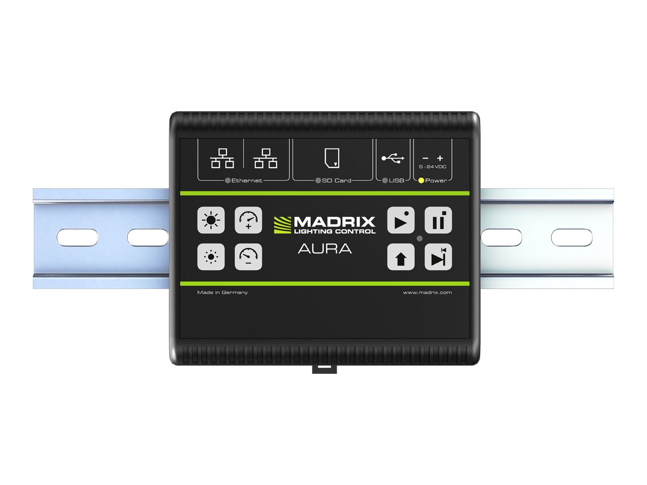 MADRIX AURAis the advanced recorder and stand-alone playback unit for your lighting.It is small in size, but mighty in features. |