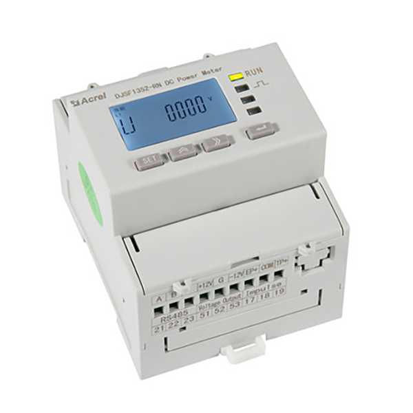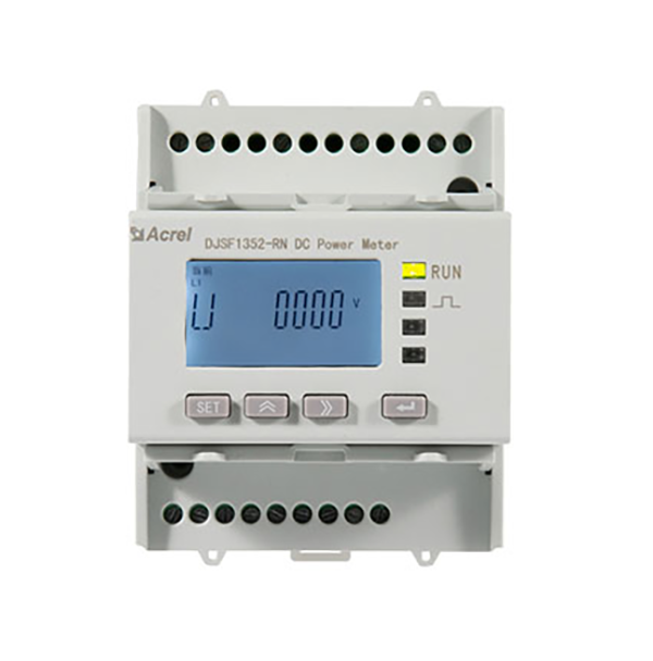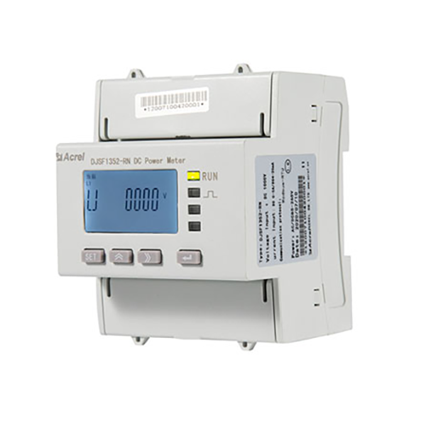 - DJSF1352-RN rail-mounted DC power meter with double DC input channels, designed for telecommunications base stations, DC charging piles, solar photovoltaic and other applications, this series of meters can measure the voltage, current, power and forward and reverse energy and so on in the DC system.The actual use of the site, you can measure the total power, but also measure the energy within a specified period of time. The test results can be used for local display, but also with industrial control equipment, computers to form a measurement and control system.