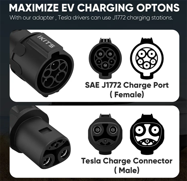 IKITS J1772 to Tesla Charging Adapter 80A/250 VAC tesla to j1772