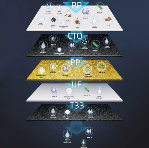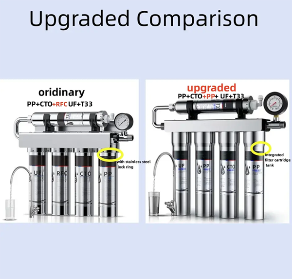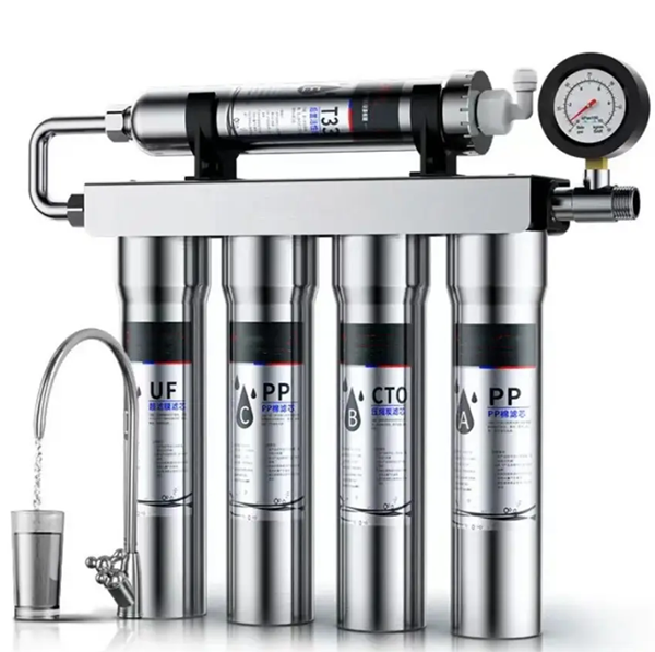 - Material: Stainless steel Filter Cartridge: PP+PP+CTO+UF+T33 / Flow rate: 90L/H / OEM/ODM: Availabe Filter life: 12-24 Months / Micron Rate: 0.01-0.001 micron