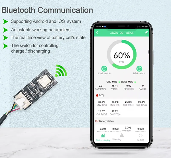 Cells Batteries with RS485 BLUETOOTH 2NTC can programming