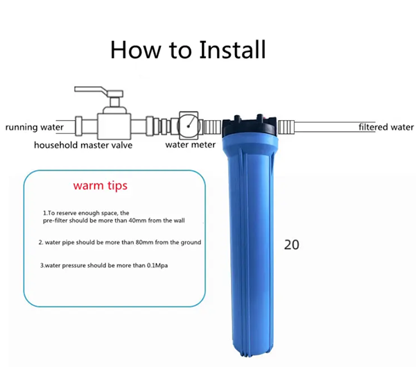 YL-17B Pre-water Filter. 20 Inch Big Blue Kitchen Activated Carbon Water Tap Food Grade ABS.