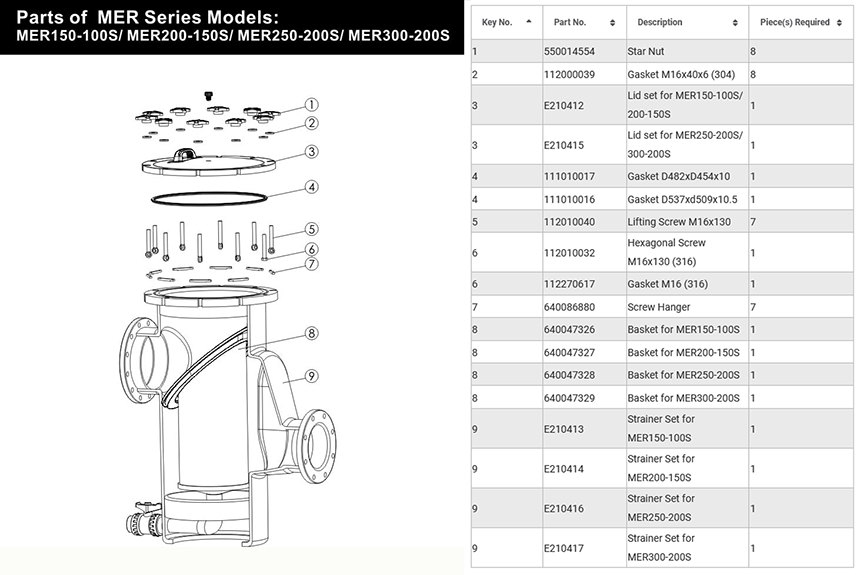 Spare part MER150-100S / MER200-200S / MER300-200S