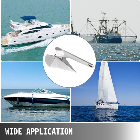 - WIDE APPLICATION - The versatile design of our delta style boat anchor is ideal for use in sand, pebble, rock, grass, kelp and coral bottoms for boats from 25ft to 40ft.
