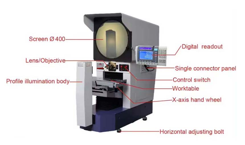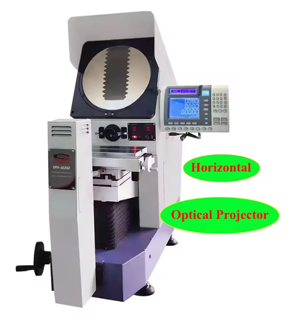 - SPH-3020Z horizontal profile projector is a photoelectric measuring system of high precision and effciency, can inspect all kinds of surface and outline of the complicated work pieces such as cam, tamplate, tread, gear, perform willing cutter and so on , the measurement data can be printed and output, it requires in the checking department and workshop and is widely used PCB industry, smart phone industry, aerospace machinery industry, plastic mould industry, watches industry , aluminum extrusion industry.