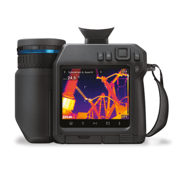 - The FLIR T840 infrared camera is designed to help electric utility and other thermography professionals comfortably survey equipment both indoors or outdoors and seek out signs of failure all day long. Thanks to an integrated eyepiece viewfinder and a bright 4-inch color LCD display, the T840 makes it easy to conduct inspections outside in bright, challenging light conditions. The 180° rotating lens platform and thoughtful ergonomic design helps users quickly diagnose failing components in hard-to-reach areas. Pair the T840 with a FLIR FlexView™ dual field of view lens for the convenience to instantly switch from wide-area to telephoto scanning. A 6° telephoto lens option is also available to ensure accurate temperature measurement of small targets from farther distances.