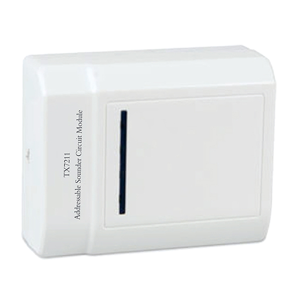 - The TX7211 Addressable Sounder Circuit Module unit manufactured base on the requirement of EN 54 part 18, European Standard. The addressable sounder circuit module is aesthetically pleasing with an unobtrusive design that will complement modern building designs and its plug-in type assembles make installation and maintenance more convenient to the installer. The addressable sounder circuit module is compatible with the TX7004 Analogue Intelligent Fire Alarm Control Panel, produced by single manufacture TANDA to avoid addressable communication compatibility problem.