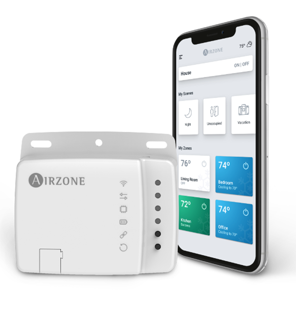 Add advanced functions to new and old installationsAidoo Pro Inverter/VRF offers complete control of Inverter/VRF AC units via the Airzone Cloud app. Thanks to its wide range of integration options, Aidoo Pro facilitates the management of these units from home automation and building management systems (BMS). The device extends the control options available to installers and integrators, enabling the control of Inverter units from a smart thermostat without losing functionality. |