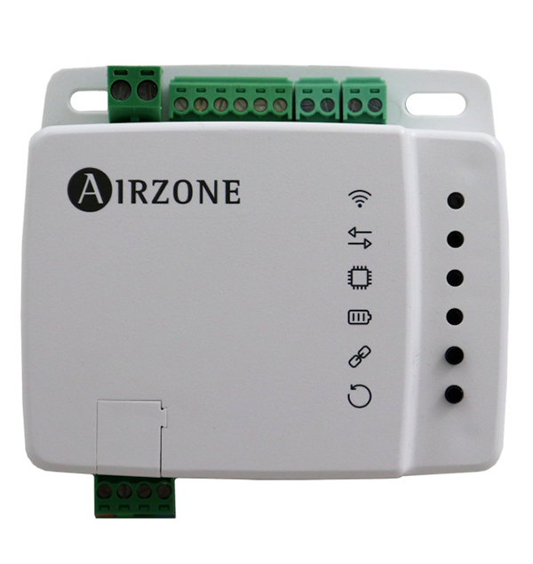 Device for remote management and integration of units via Cloud services. Control via the “Airzone Cloud” app (available for iOS and Android). Wireless network connection via WiFi. Power supplied by external source. Functionalities :