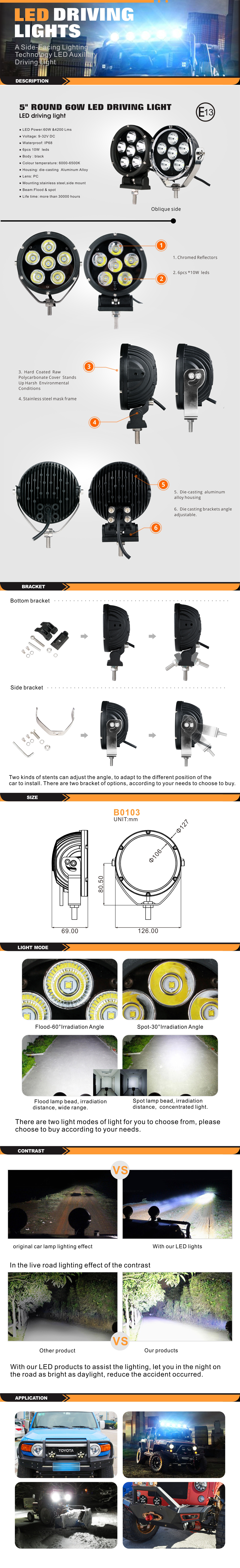 B0103 5"ROUND 60W LED DRIVING LIGHT
