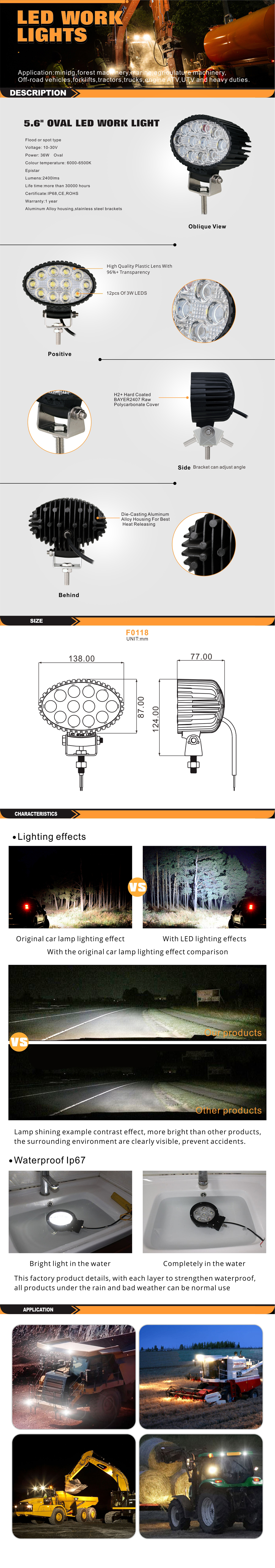 - Power: 36W Oval