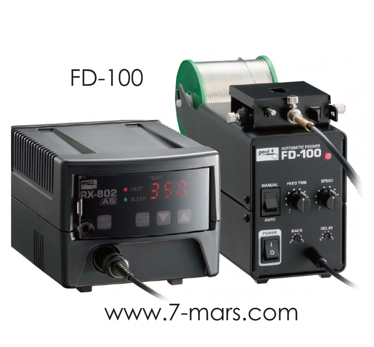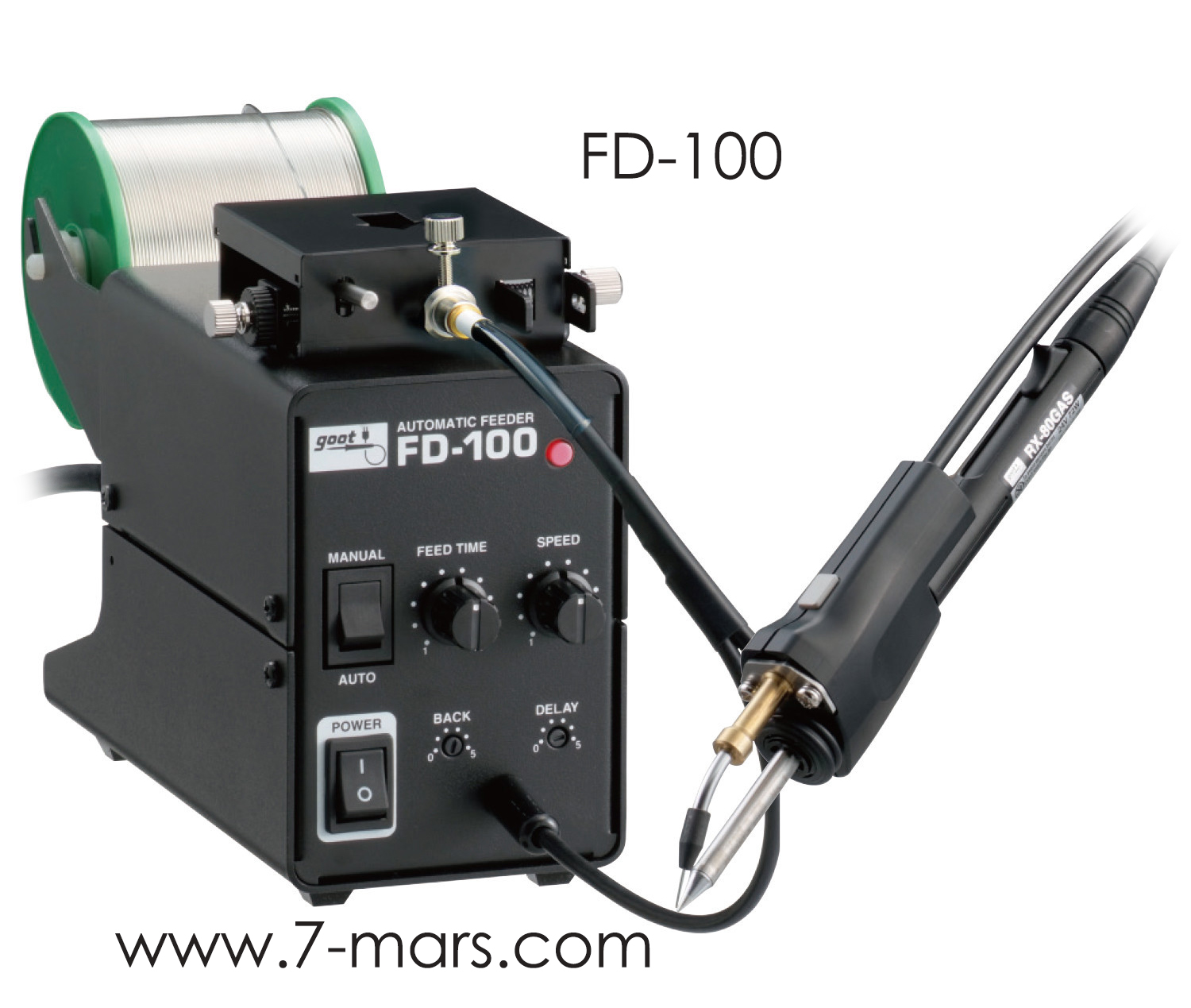Constant Feed Volume. Higher Quality at Lower Cost.-One-handed soldering work possible.-ON/OFF switch is built into the Tube Assy FD-100TA (sold separately). -ø0.6-1.6 mm lead-free solder applicable. -Solder feed method for reducing solder clogs. |
