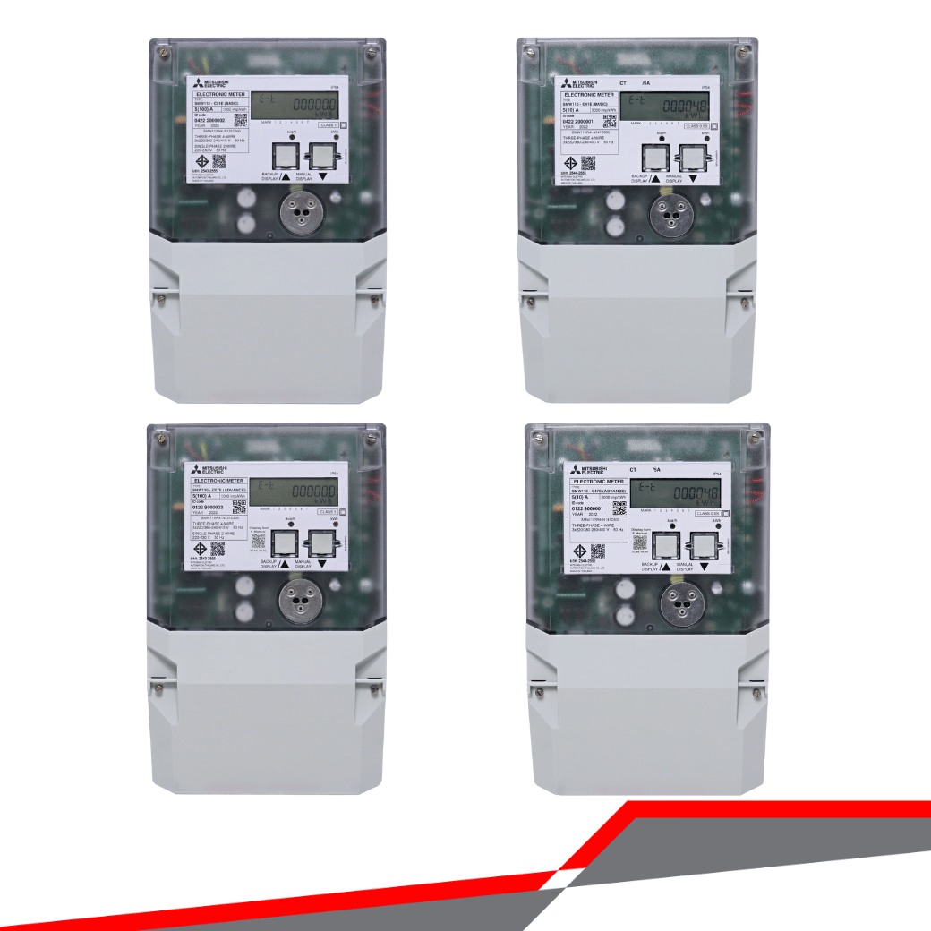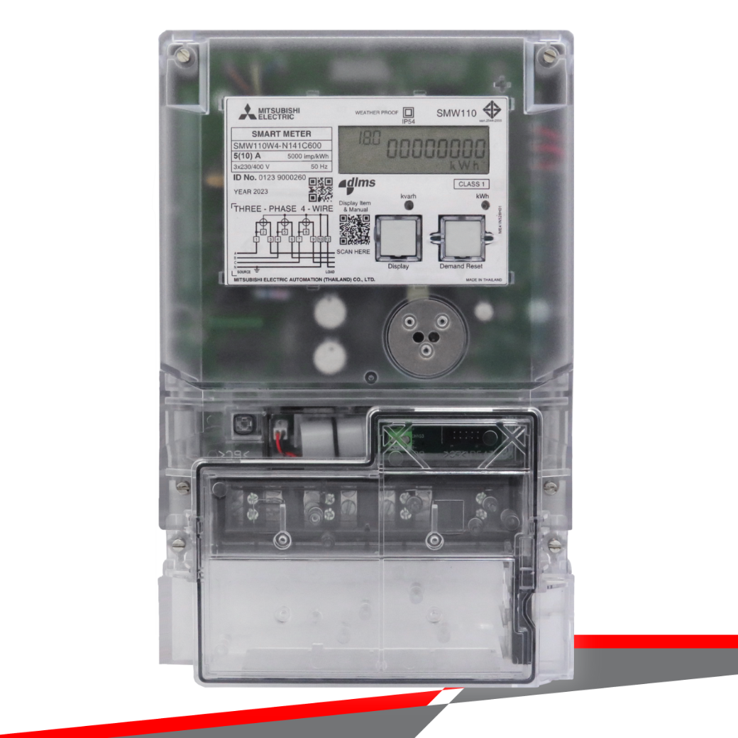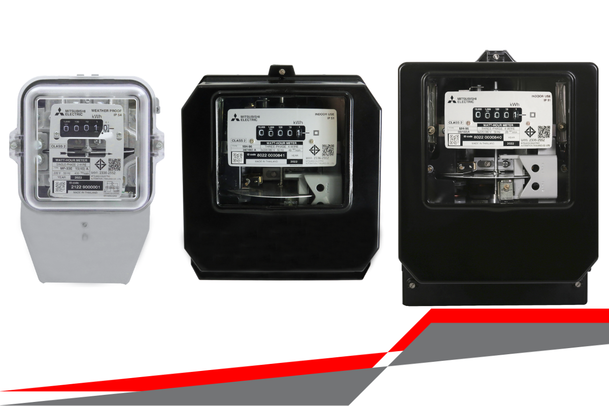 - เครื่องวัดวัตต์-ชั่วโมง อิเล็กทรอนิกส์ ของ Mitsubishi Electric รุ่น Single & Three Phase Outdoor ออกแบบมาสำหรับธุรกิจร้านค้าหรือห้างสรรพสินค้า การติดตั้งกลางแจ้งโดยไม่มีกล่องปิดเหมาะ รองรับการติดตั้งทั้งแบบสแตนด์อโลนและการอ่านเครือข่ายอัตโนมัติ (AMR)