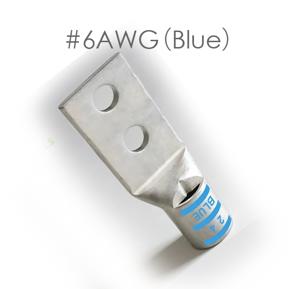 Compression Lugs Two hole 0° #6 AWG(Blue)