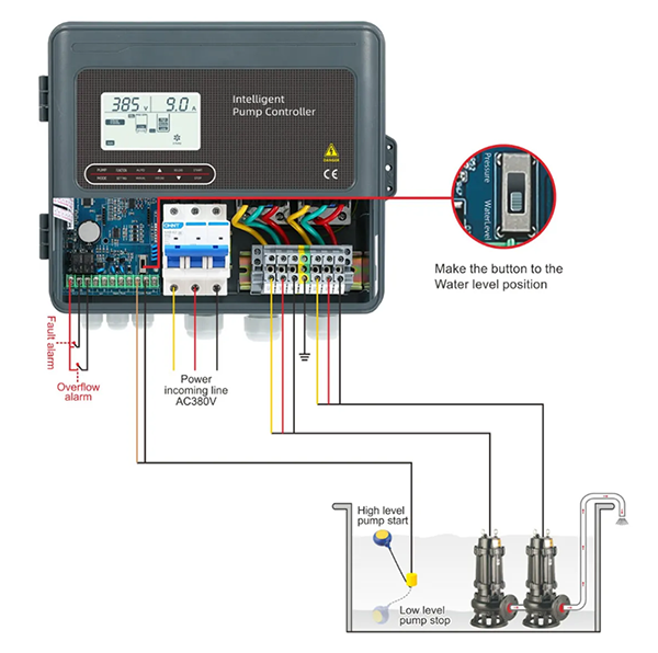 - 30Y2 LCD pump controller for two pumps adopted all imported microcomputer single chip technology guarantees powerful functions and has the advantage of efficient installation and operation. Unique non-contact it technology enables no need of probes to achieve shutdown on when the pump is running dry due to lack of water realizing fully intelligent and unmanned operation. It is a device designed to control and protect the operation of various water pumps up to 18.5KW, such as submersible pumps, centrifugal pumps, multistage pumps,deep-well pumps, sewage pump, booster pumps, pipeline pumps, ground pumps, and e