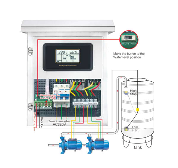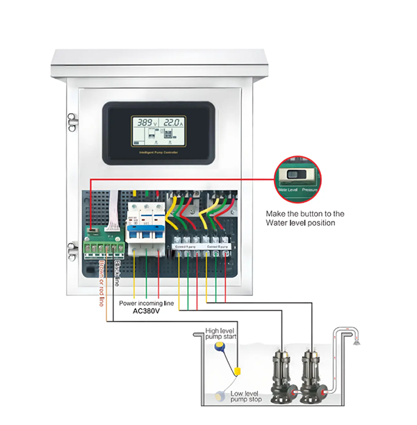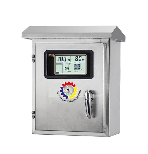 - A series outdoor rainproof stainless steel pump controller adopts the original imported microcomputer single chip technology which guarantees powerful functions and has the advantage of easy and convenient installation and operation. Unique non-contact induction technology enables no need for probes to achieve shutdown protection when the pump is running dry due to lack of water, thus realizing fully intelligent and unmanned operation. It is a device designed to control and protect the operation of various water pumps up to 30KW, such as submersible pumps, centrifugal pumps, multistage pumps, deep-well pumps, sewage pumps, booster pumps, pipeline pumps, ground pumps and etc.