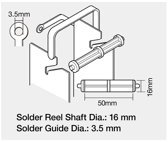 - Both the upper and lower spindles can be mounted with up to 1kg solder reels.
