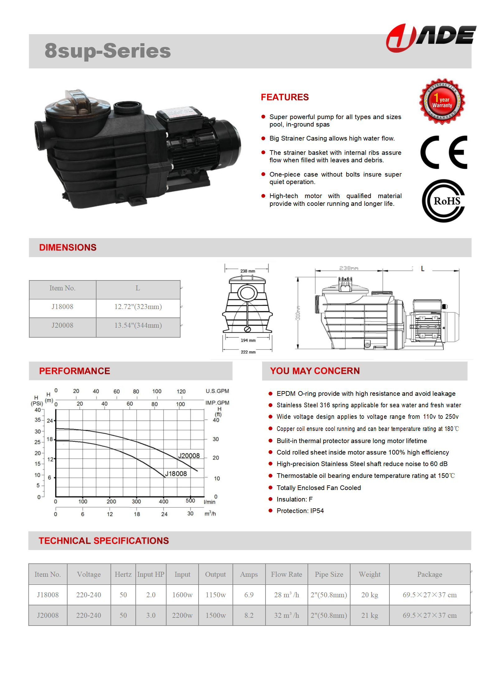 J2000-6E, 7E Pool Pumps Variable 2-Speed Swimming Pool Pumps