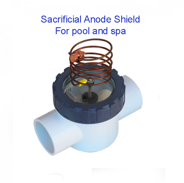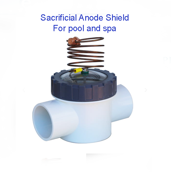 - A zinc sacrificial anode provides a shield that protects bathers from the risk of electric shock, especially in fiberglass pools that lack metal bonding. Equally, when saltwater chlorinator disinfection systems are used, it prevents electrolytic corrosion of metal pool parts such as stainless steel ladders, heat pump, heat exchangers, UV-C stainless steel casing, stainless steel lighting niches, and face rings, aluminum pump motor housings, and salt chlorinator titanium cell plates.