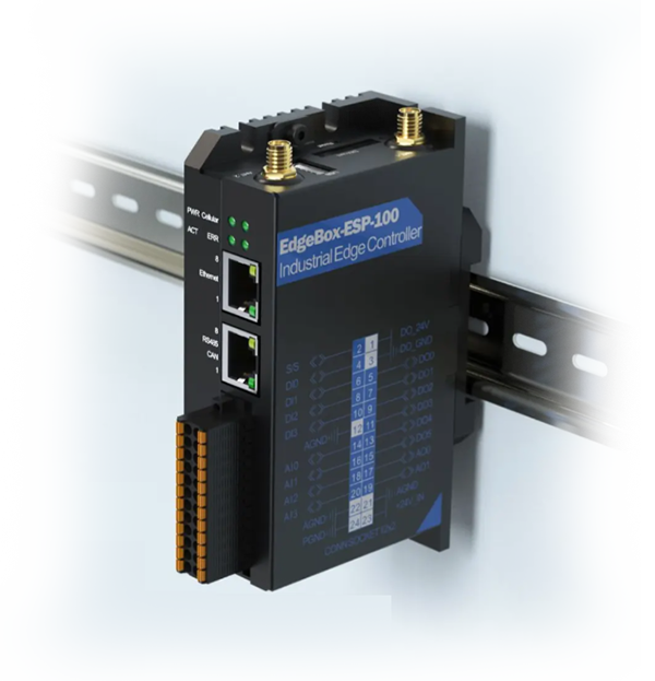 - EdgeBox-ESP-100-Industrial Edge Controller, WiFi, BLE, 4G LTE, DIO, AIO, Ethernet, CAN, RS485
