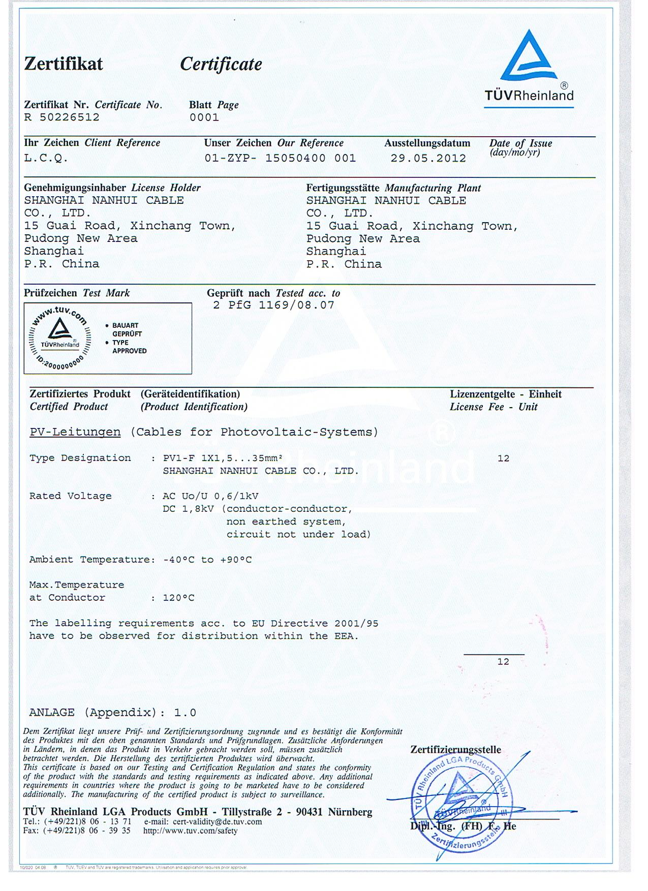 Nominal Voltage:AC UO/U=600/1000V,DC 1000/1800V