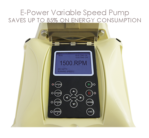 Traditional single speed pump runs at maximum load continuously, inefficient and high running cost compared to the Emaux EPV range. Reduced speed provides slower water circulation rates puts less strain on the complete installation such as filter, sanitization and plumbing. It reduces the wear and tear factor ending in saving to the home owner.