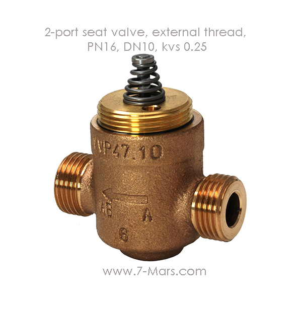 2-port seat valve, external thread, PN16, DN10, kvs 0.25