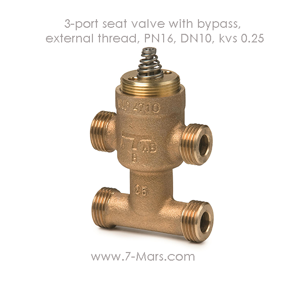 3-port seat valve with bypass, external thread, PN16, DN10, kvs 0.25