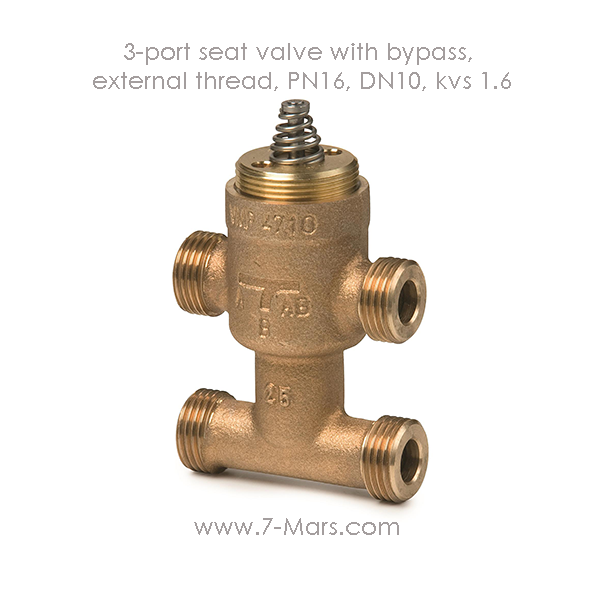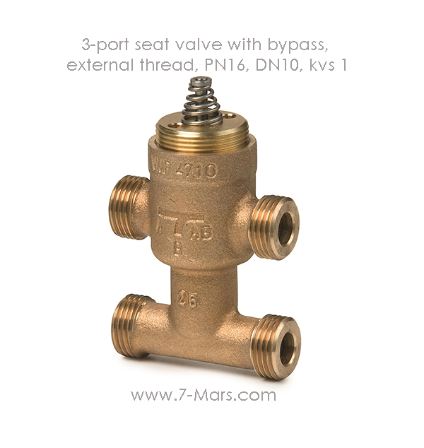 3-port seat valve with bypass, external thread, PN16, DN10, kvs 1