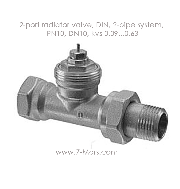 2-port radiator valve, DIN, 2-pipe system, PN10, DN10, kvs 0.09...0.63