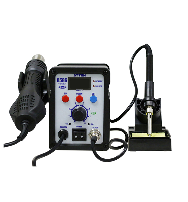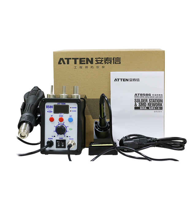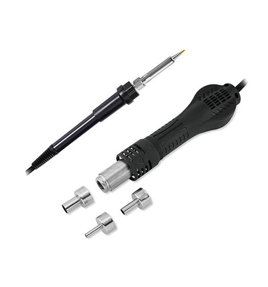 Main Unit: 1 Unit,Hot Air Gun Holder : 1 PCS,Soldering iron: 1 PCS, AC Cord: 1 PCS,Iron Stand(with cleaning sponge): 1 PCS,Nozzles: 3 PCS, Manual: 1 P