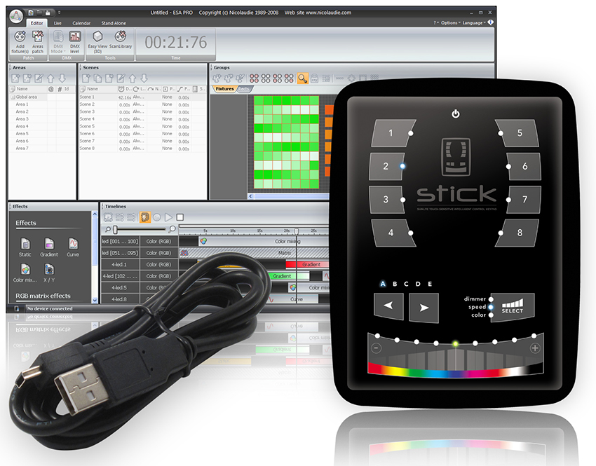 1024 DMX channels, touch-sensitive panel, clock/calendar, remote control, Ethernet facilities, and much much more...The lighting levels, color, and effects can be programmed from a PC, Mac, Android, iPad or iPhone