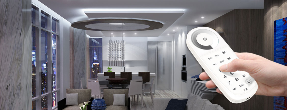 - Can RF remote the functions of dimming, quick brightness selection and DIY and so on. User-friendly color wheel for brightness adjustment, unique LED state light for sync change indicated, user can simply know the LED working state from distance by checking the remote.