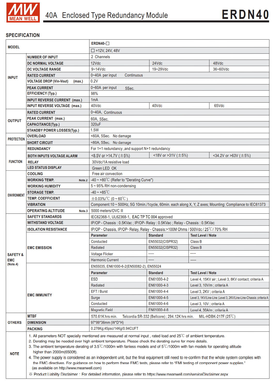 - Built-in two channels DC OK relay contacts for monitoring power status