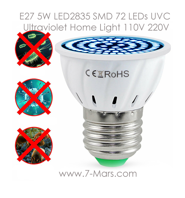 GU10 5W LED UV Lamp 2835 SMD 72 LEDs UVC Ultraviolet Home Light 110V 220V