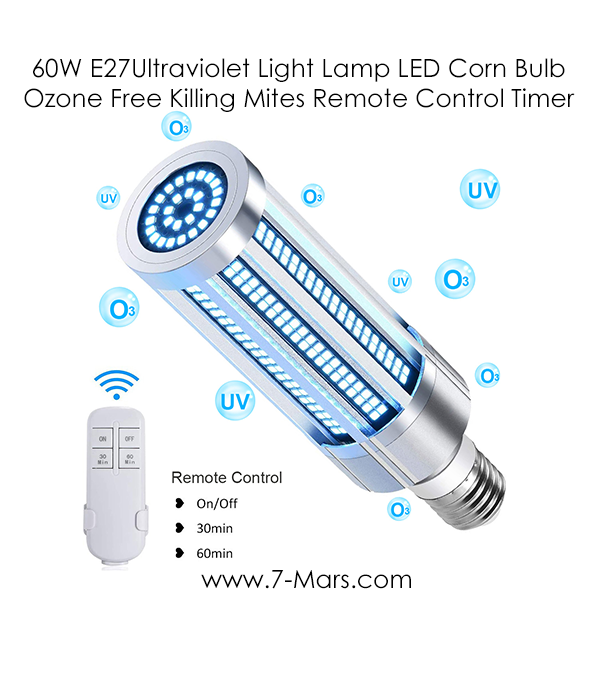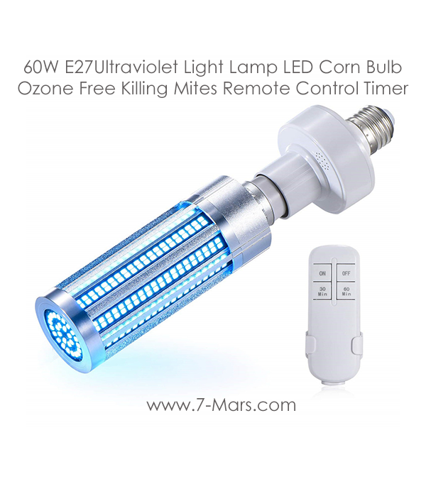 60W E27 UV Ultraviolet Light Lamp LED Corn Bulb Ozone Free Killing Mites Remote Control Timer