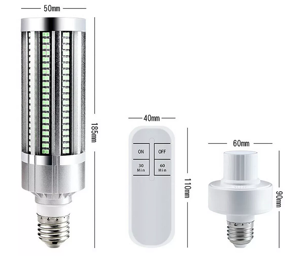 1 * 60W UVC bulb / 1 * 60W bulb + remote control (Battery not Included)