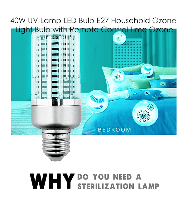 40W UVSMD5736 Lamp E27 130Led UVC Corn Bulb LED Lights Home Clean Air +Remote Control