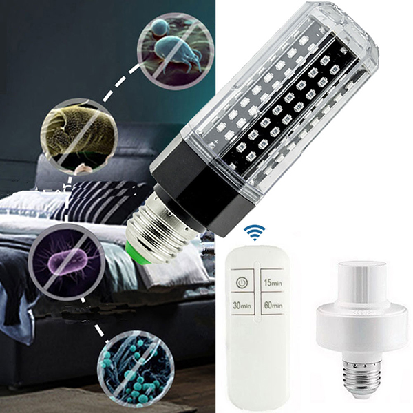60W E27 3535SMD. UV Ultraviolet Light Lamp LED Corn Bulb Ozone Free Killing Mites Remote Control Timer