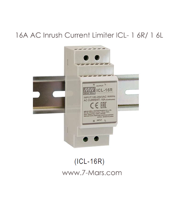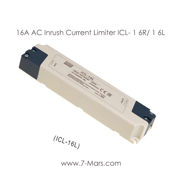 The ICL-16 is a 16A inrush current limiter that can be used to reduce the high starting current due to capacitive load causing the circuit breaker to be false triggered. Several power supplies can be installed on the same AC line after the implementation of an ICL-16.