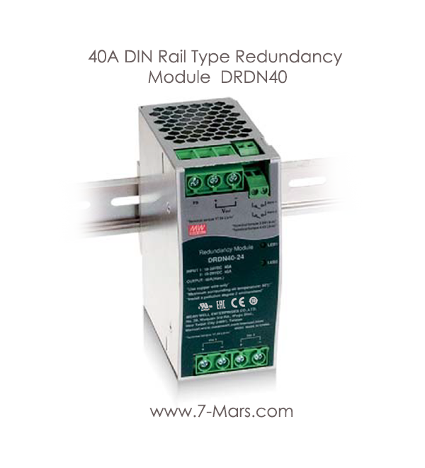 The DRDN40 series is a 40A redundancy module that can be used with a power supply to improve overall system operation reliability. Product key features include:12V/24V/48V input voltage for selection, support N+1 and 1+1 redundancy systems, built-in two rails DC input contacts and single output. The MOSFET technology implemented can reduce heat loss and reduce the voltage difference between the input and output voltages, built-in 2 channels DC OK relay contacts for monitoring output status, ultra-wide operating temperature of -40 to +80°C and narrow width (55mm).