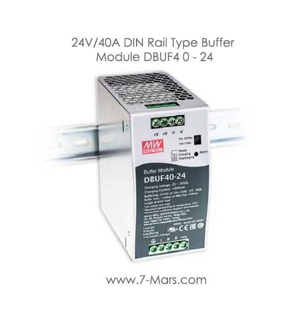 The DBUF40-24 buffer module is a supplementary device for regulated DC 24V power supplies. The buffer module utilizes maintenance-free electrolytic capacitors to store energy,thus eliminates the need of periodic replacement as compared to costlier batteries which also have shorter functional life span. The DBUF40-24 comes with comprehensive protection features like over voltage, over current and short circuit protections. Buffer modules can be connected in parallel to increase the output ampacity or the hold-up time.