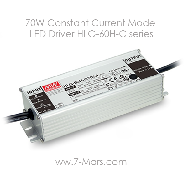 HLG-60H-C series is a 70W AC/DC LED driver featuring the constant current mode and high voltage output.