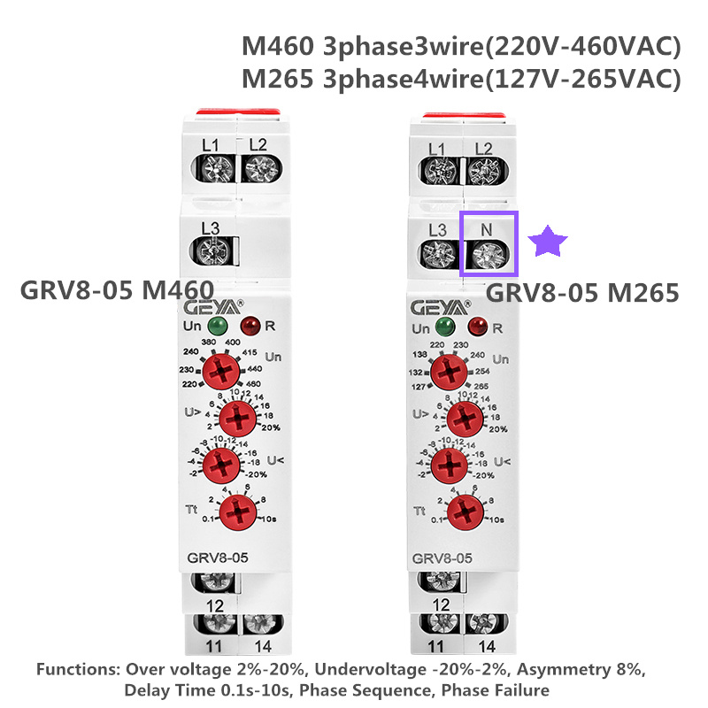 ใช้งานสำหรับป้องกันอุปกรณ์ในระบบไฟฟ้าและโหลดเสียหายจากไฟตกไฟเกิน มาไม่ครบเฟส Phase Sequence & Phase Failure & Asymmetry 8% ( P - N ) Voltage : 127, 132, 138, 220,230,240,254,265V ( 3Phase 3Wire )
