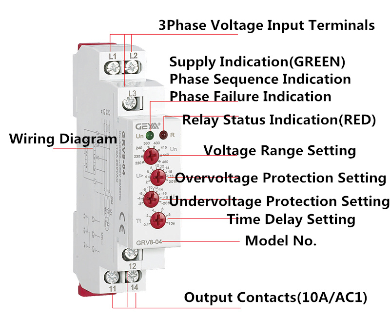 3-Phase Voltage Relay GRV8-04 Over and Under Voltage Protector Relay