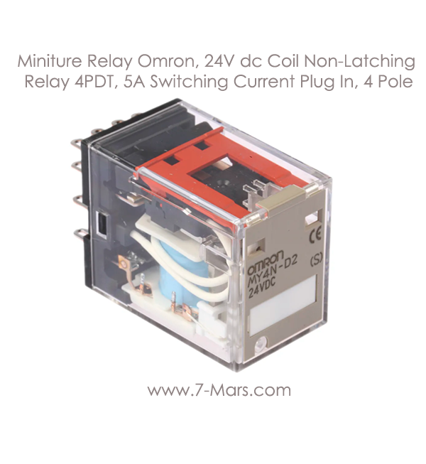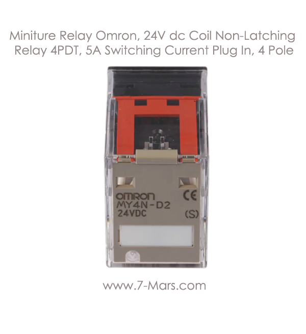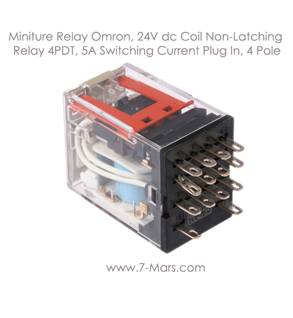 Miniture Relay Omron, 24V dc Coil Non-Latching Relay 4PDT, 5A Switching Current Plug In, 4 Pole