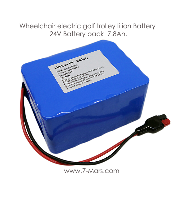 Wheelchair electric golf trolley li ion battery 24V / 7.8Ah. battery pack