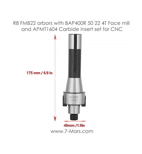 R8 FMB22 arbors with BAP400R 50 22 4T Face mill and APMT1604 Carbide insert set for CNC