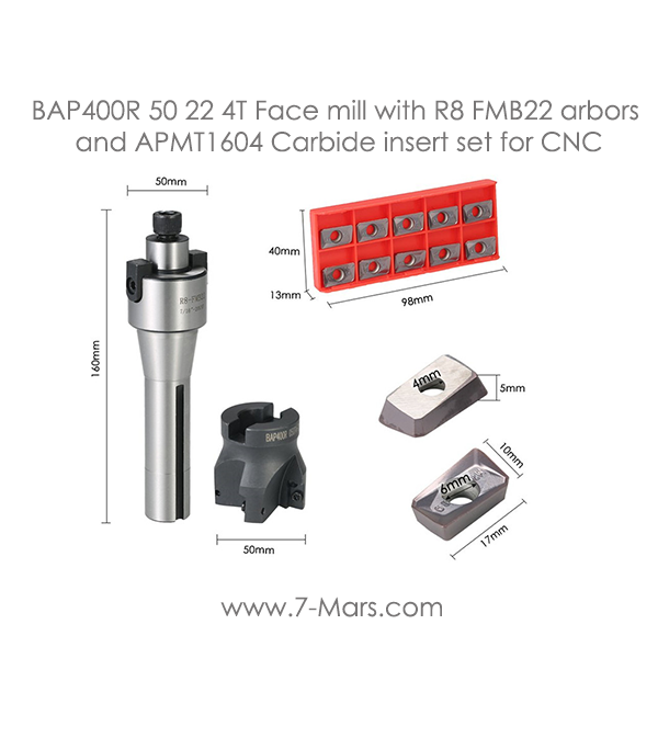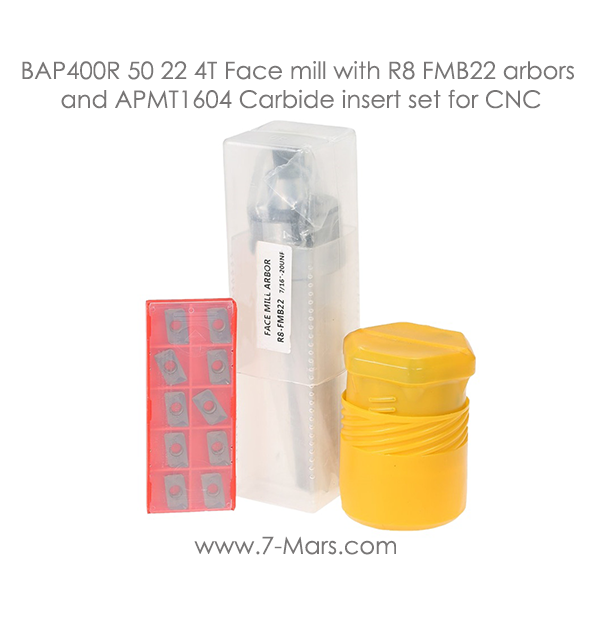 BAP400R 50 22 4T Face mill with R8 FMB22 arbors and APMT1604 Carbide insert set for CNC