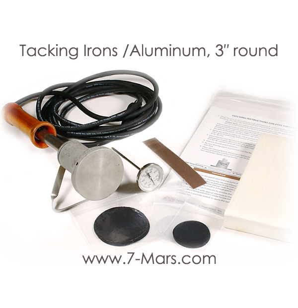- Tacking irons are available in brass or aluminum. Stock head sizes include 1″ x 3″ rectangular, 2″ x 3″ rectangular and 3″ round. These tools are designed with a wattage that will achieve the proper sealing temperature for PTFE without the need for a temperature controller. / AFC manufactures a variety of hand-held tacking irons that are used in sealing and patching PTFE coated fabrics. Tacking irons are available in brass or aluminum, and come in various stock rectangular and round head sizes. These tools are designed with a wattage that will achieve the proper sealing temperature for PTFE without the need for a temperature control.Our sales & service team is standing by to answer your questions.